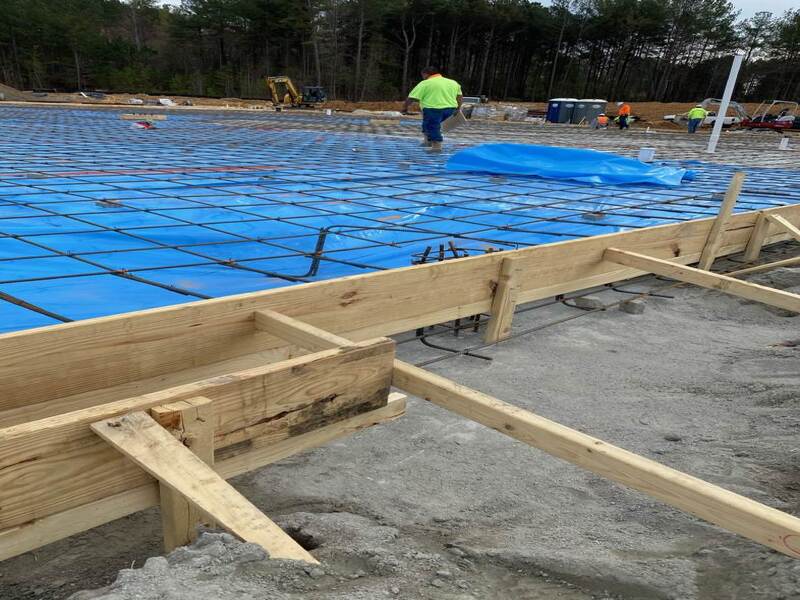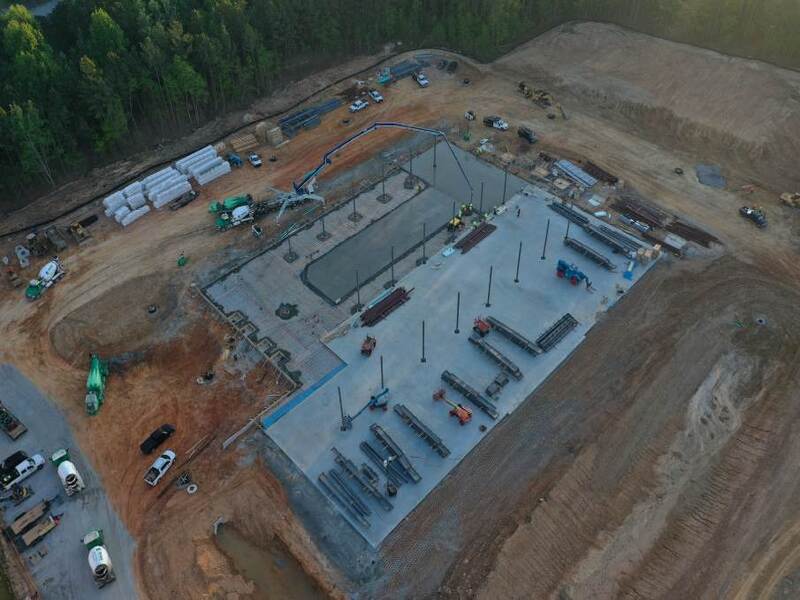 The facility includes a 55,000-square-foot slab, constructed using over 2,000 cubic yards of concrete and 60 tons of rebar to ensure a strong and durable foundation. A 144-foot Cast-in-Place Wall was engineered with precision to provide robust structural support.